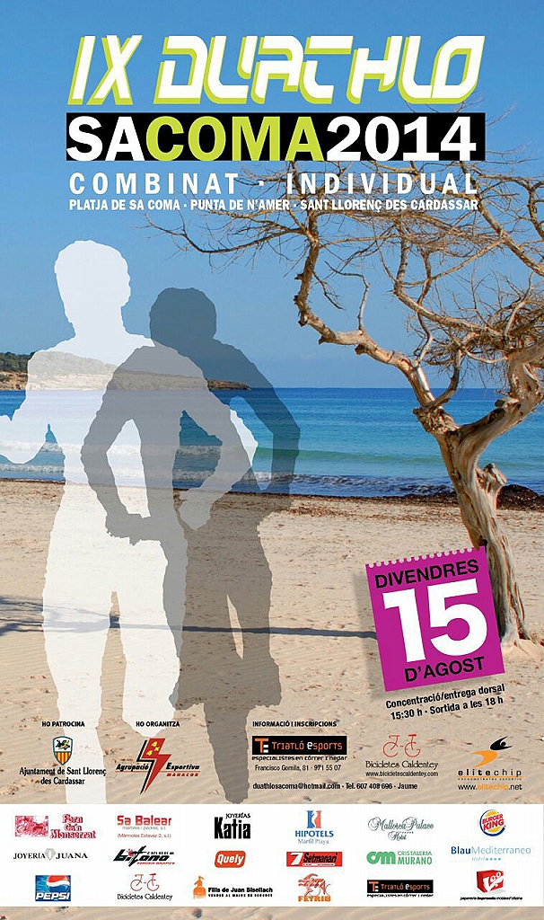 La AGRUPACIÓ ESPORTIVA MANACOR organiza para el próximo día 15 de agosto el “IX DUATHLÓ SA COMA 2014”, en la playa de Sa Coma-Punta de N´Amer, SANT LLORENÇ DES CARDASSAR.