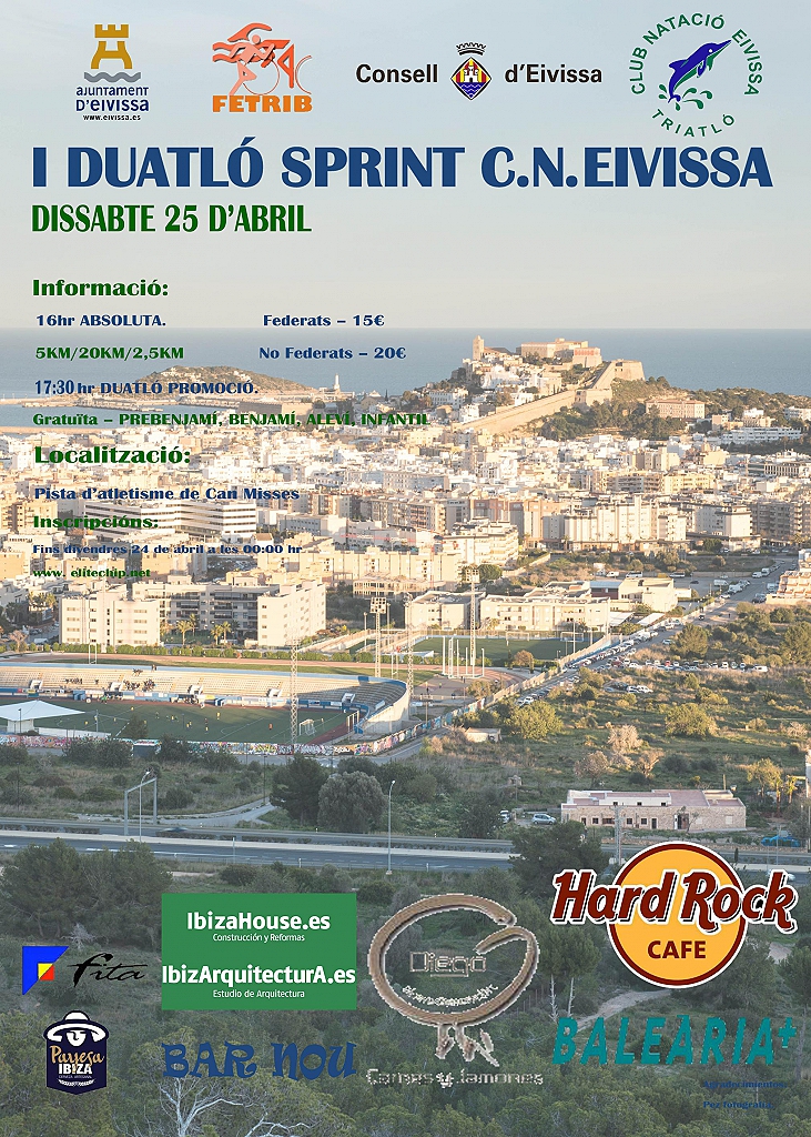 El duatlón se realizara en el municipio de Ibiza, relizandose la salida en la pista de atletismo de Can Misses, el día 25 de Abril de 2015 a las 16:00 horar.